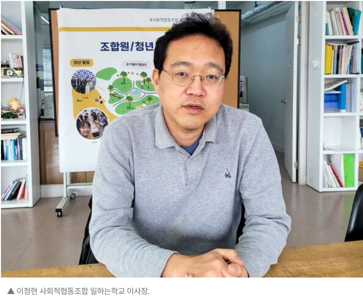 이정현 '사회적협동조합 일하는학교' 이사장을 만나자 던진 말이다. 청년들의 자립을 돕는 학교(성남시 수정구·비영리 법인)를 이끈다.