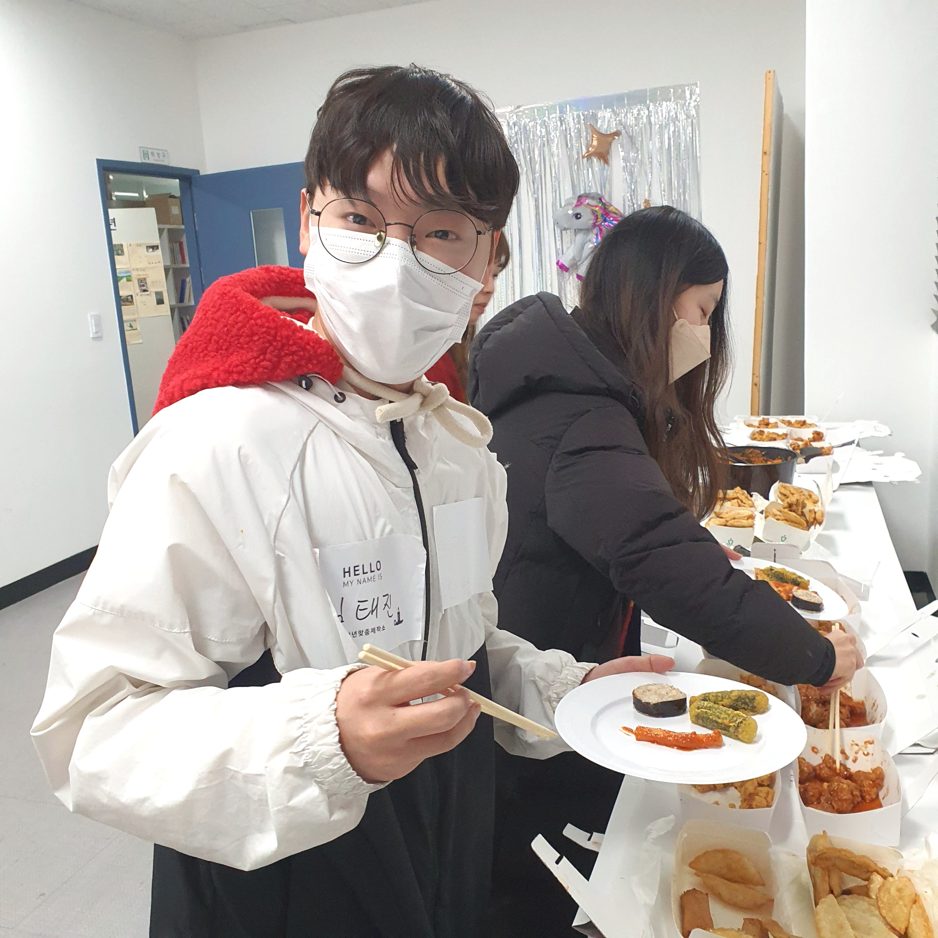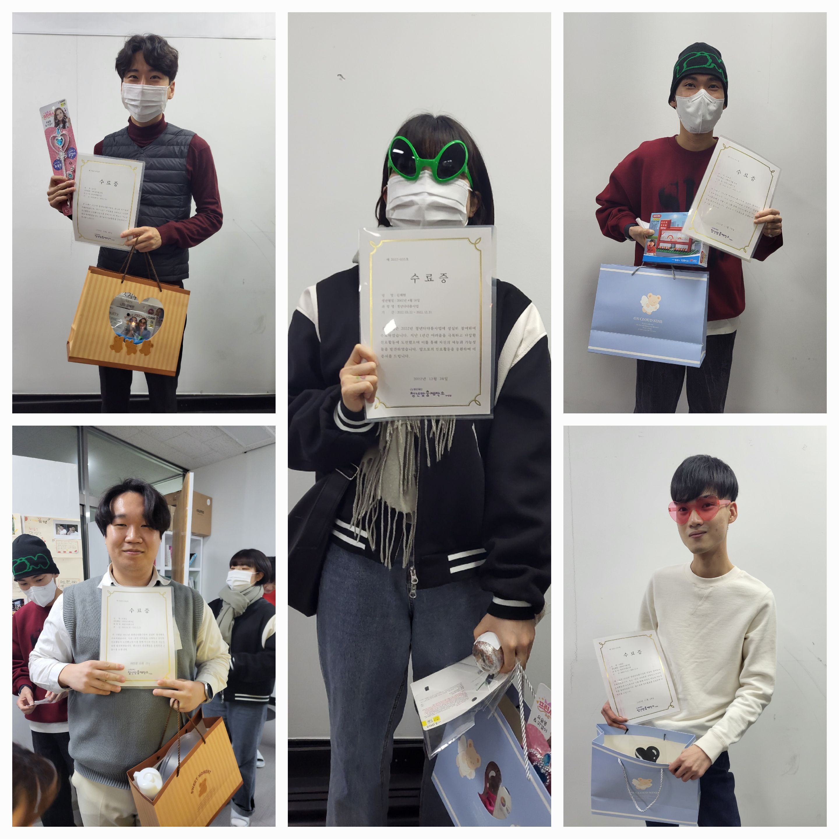 ์๋ฃ์์์๋ ๋ง์๋ ์์, ํ์ฑํ ์ ๋ฌผ๊ณผ ํจ๊ป 1๋ ์ ๋์๋ณด๋ฉฐ ์๋ก ๊ฒฉ๋ คํ๊ณ ์์ํ๋ ์๊ฐ๋ค์ ๊ฐ์ก์ต๋๋ค!