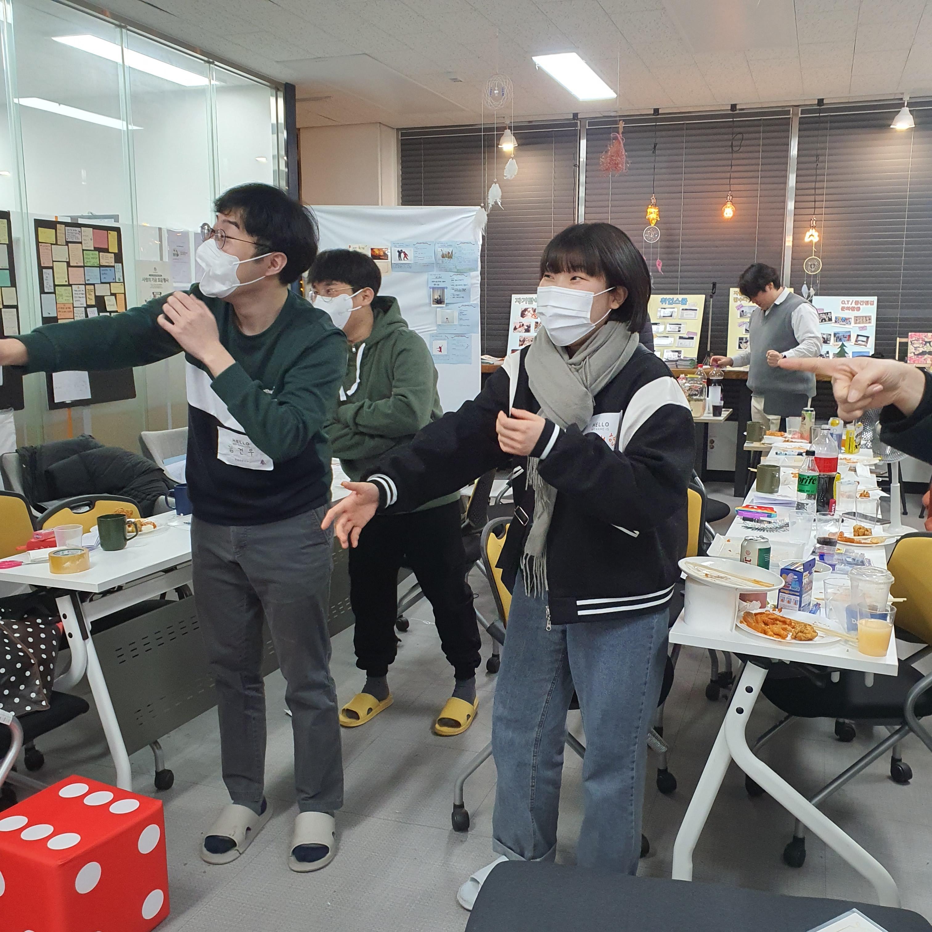 ์ ๋์๋ณด๋ฉฐ ์๋ก ๊ฒฉ๋ คํ๊ณ ์์ํ๋ ์๊ฐ๋ค์ ๊ฐ์ก์ต๋๋ค!