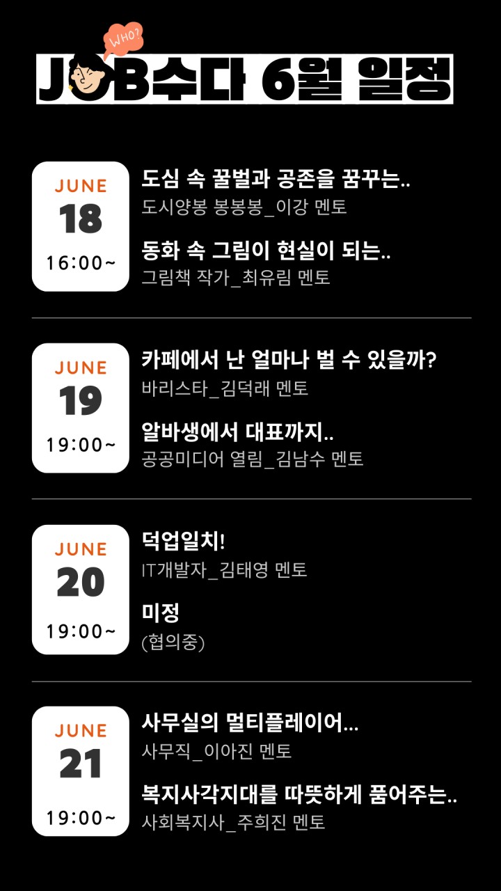 6회차가 끝나고 일하는학교에서 '잡수다'라는 현직자와의 만남을 준비해주셨어요.